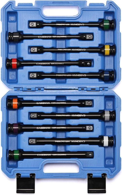 10 Piece 1/2″ Drive 8 Inch Length Color-Coded Torque Extension Bar Set, 65 to 150 Ft-Lbs (90 to 200 Nm), Torque Extension Tool Set
