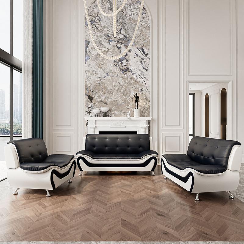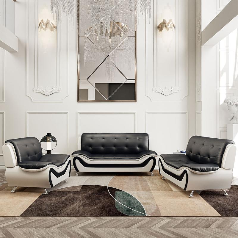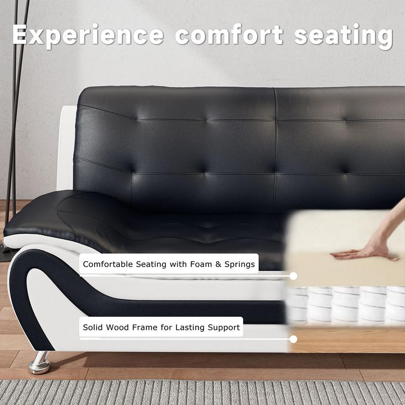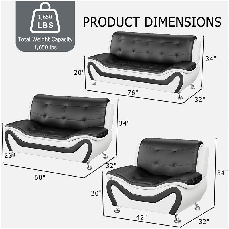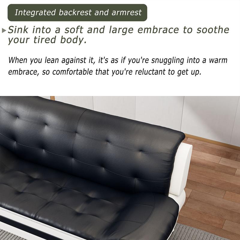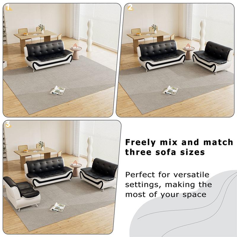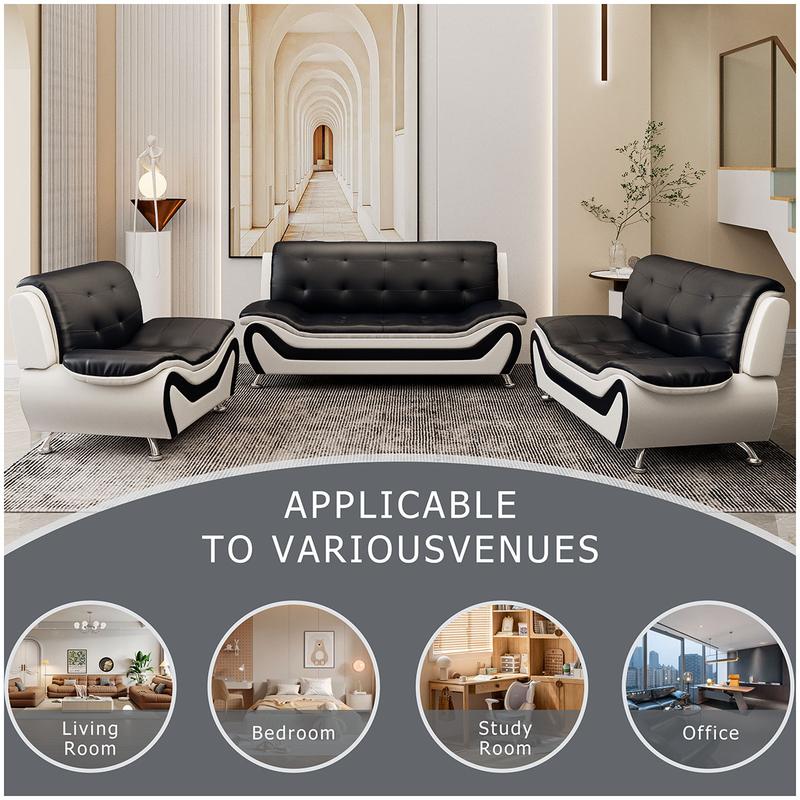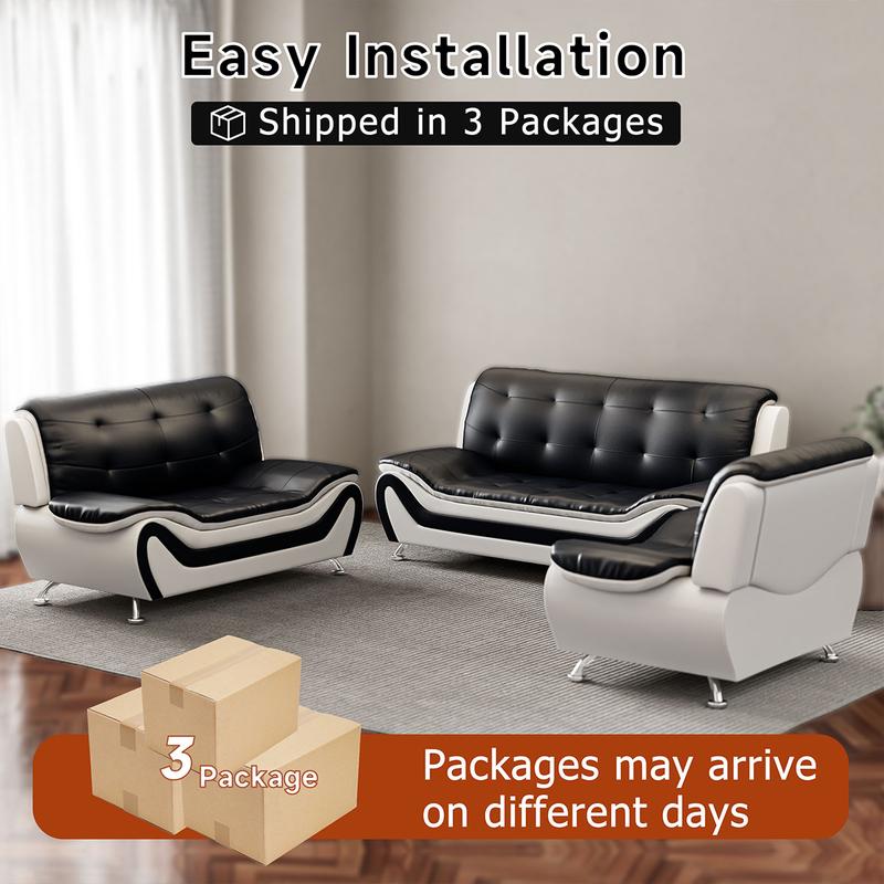 3Pcs Couches Faux Leather Sofa Set for Living Room, Tufted Sectional Couch Upholstered Sofa, Loveseat and Chair, Furniture Sets for Living Room, Apartment, Office